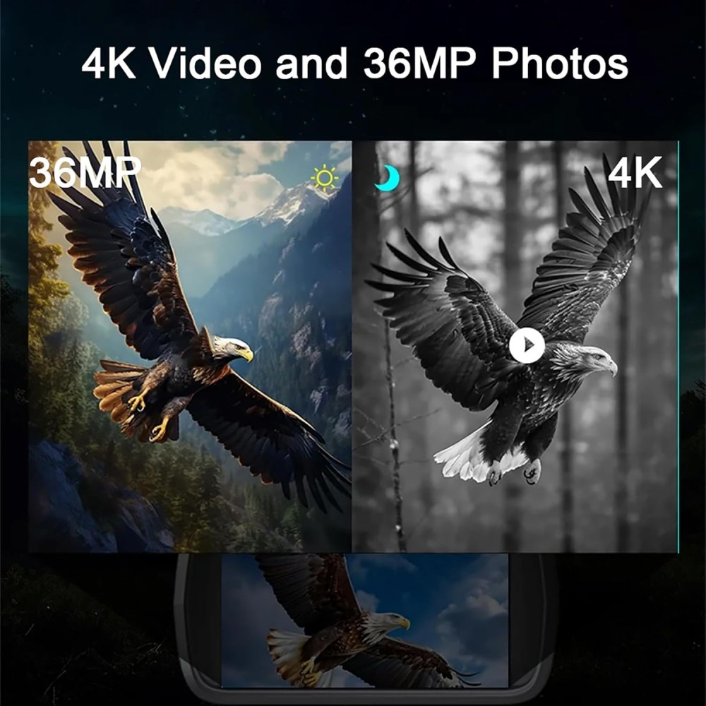 ★High-Resolution Imaging & Video Capture: Experience unparalleled clarity with our binocular night vision device, offering photo resolutions up to 36MP and video resolutions up to 4K. Perfect for capturing stunning visuals during the day and stunning night vision footage with enhanced 480P night vision mode.