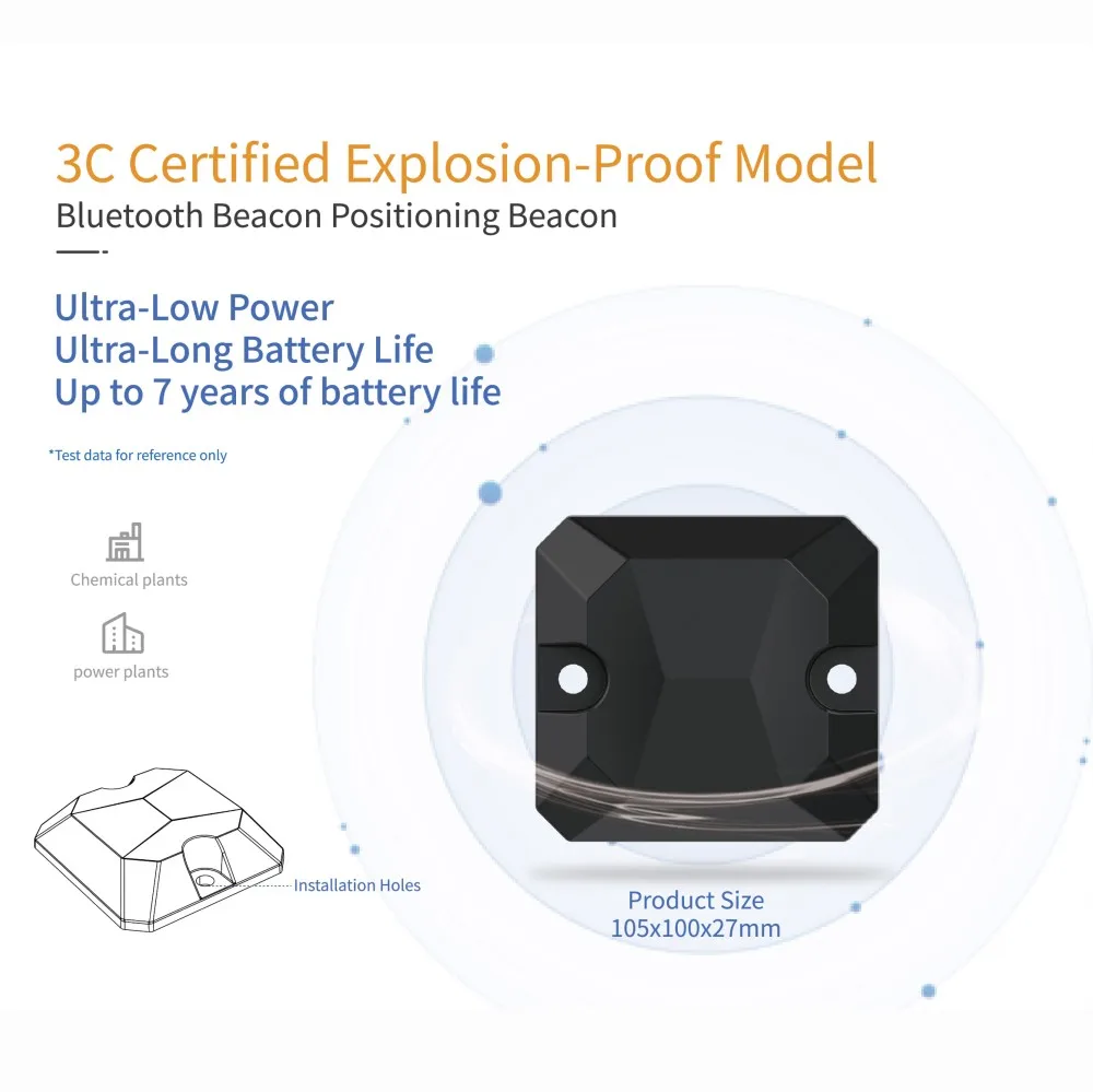 Utilizes BLE 2.4GHz positioning technology and BLE 37-39 communication protocol. Delivers precise positioning, device management, two-way communication, low-battery alarms, and remote firmware upgrades.