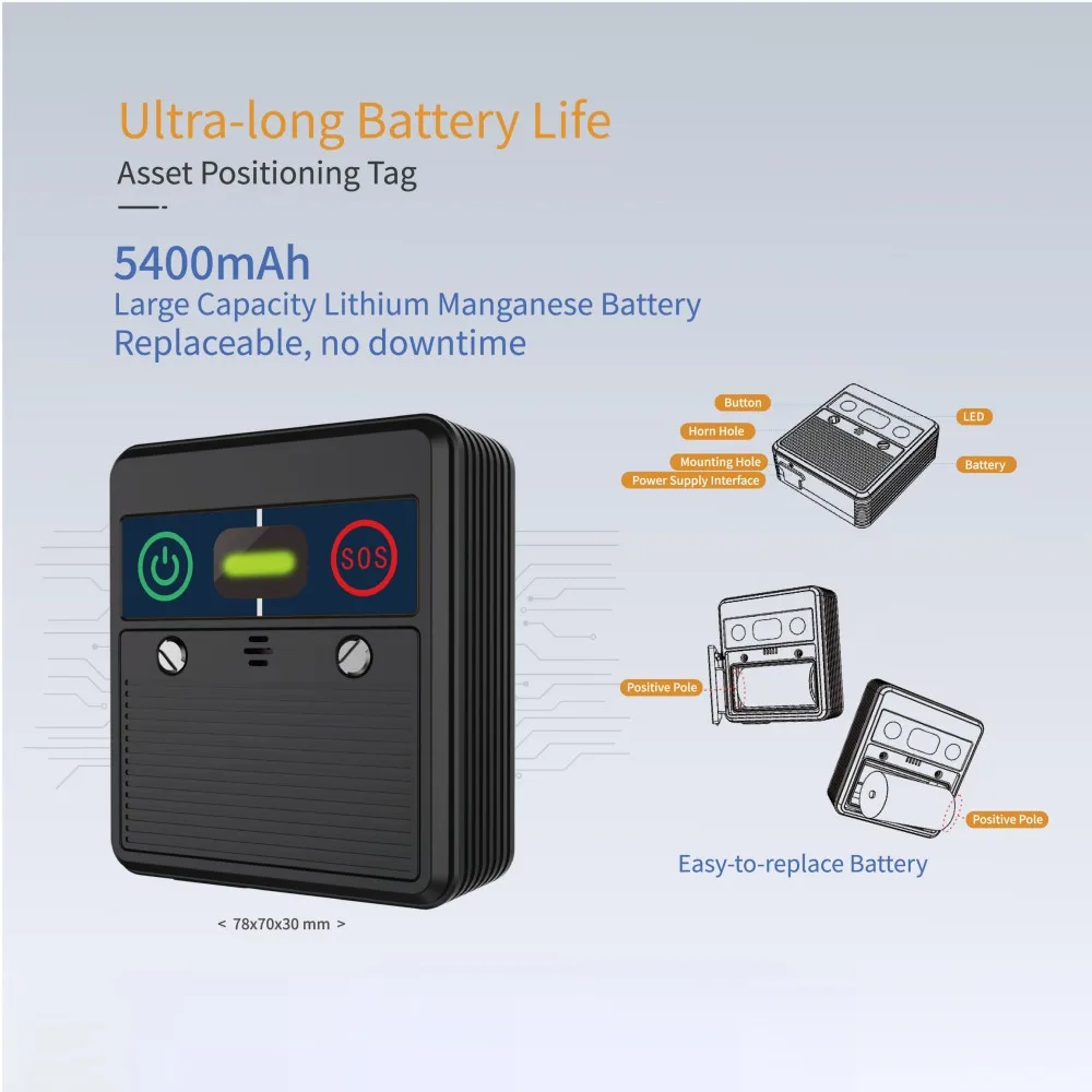 5400mAh Replaceable UWB BLE Asset Positioning Tag IP68 Waterproof Centimeter-level High Precision Anti-tampering Tracker